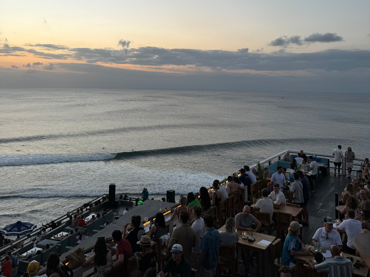 ウルワツ寺院から車で約10分のところにあるサンセットが有名なカフェレストランです。欧米の若者に人気で、絶景が見渡せるカフェとしても人気です!ウルワツにはサーフスポットが多数あり、世界中からサーファーが訪れます。シングルフィンからも施設横の階段を降りると直接サーフスポットに繋がっており、サーフィンを楽しむ方が続々と訪れていました。カフェレストラン以外にも施設周辺にサーフショップや雑貨屋さんなどあるのでお土産なども購入できます。また入場料は無料ですが、サンセットタイムの5時以降は混雑してしまい、お席の確保が難しくなるので早めに行くか予約をしておくことをおすすめします。夜は度々イベントが行われ、ビーチクラブの雰囲気を味わえますので是非お近くにお越しの際は是非訪れてみて下さい。